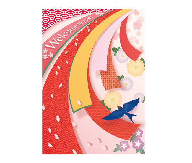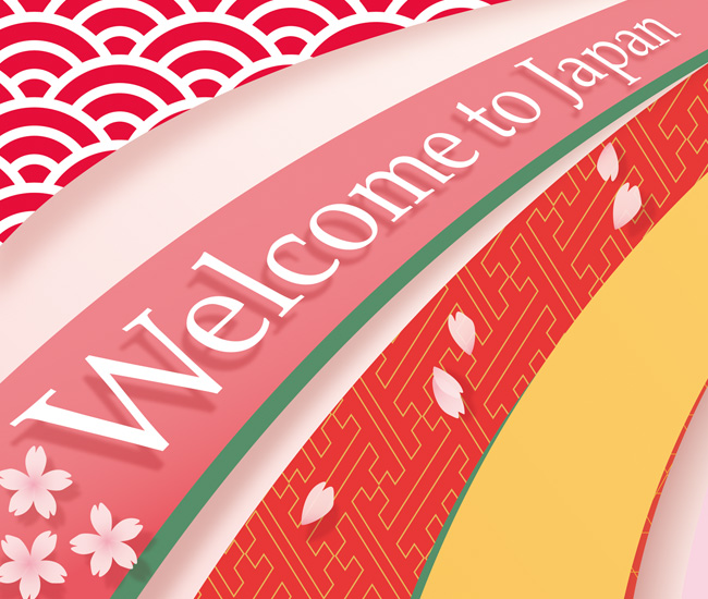 国際空港に展示される想定で制作しました。たくさんの意味が込められている文様を明るく華やかに使い「ようこそ日本へ」と「日本での滞在期間を無事にすごせますように」という2つの意味を込めました。
